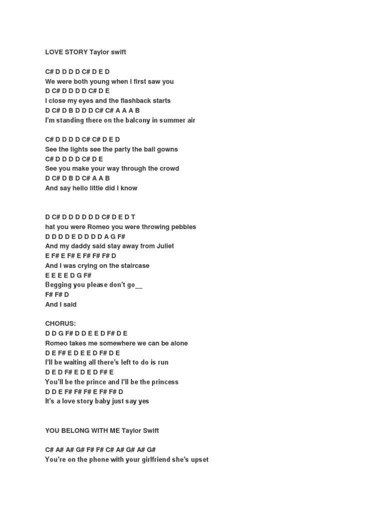 Source: www.chords.vip chorus romeo, take me somewhere we can be alone i'll be waiting, all there's left to do is run you'll be the prince and i'll be the princess it's a love story, baby, just say yes.